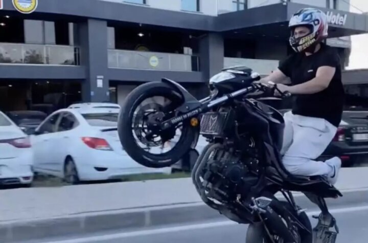 Tekirdağ'ın Kapaklı ilçesinde toplumsal medya üzerinden tehlikeli motosiklet sürüşü yapan aday şoför H.Y.G. 53...